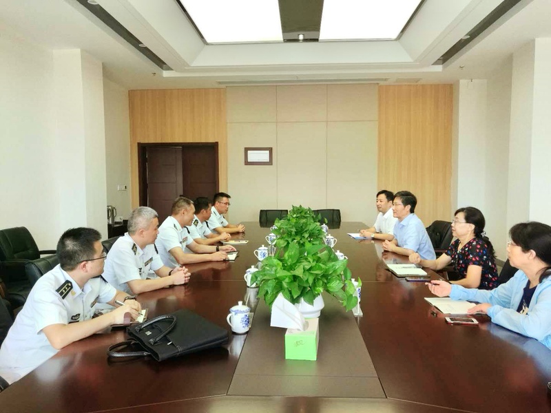 9月1日上午,海军士官学校校长王永平大校一行考察石湫校区。王建校长在崇德楼319会议室,会见了王永平校长一行。王建校长介绍了我校的发展建设情况,阐释了学校“职前职后融通、教育科研引领、实践取向鲜明”的办学特色。王永平校长介绍了海军士官学校的基本办学情况。