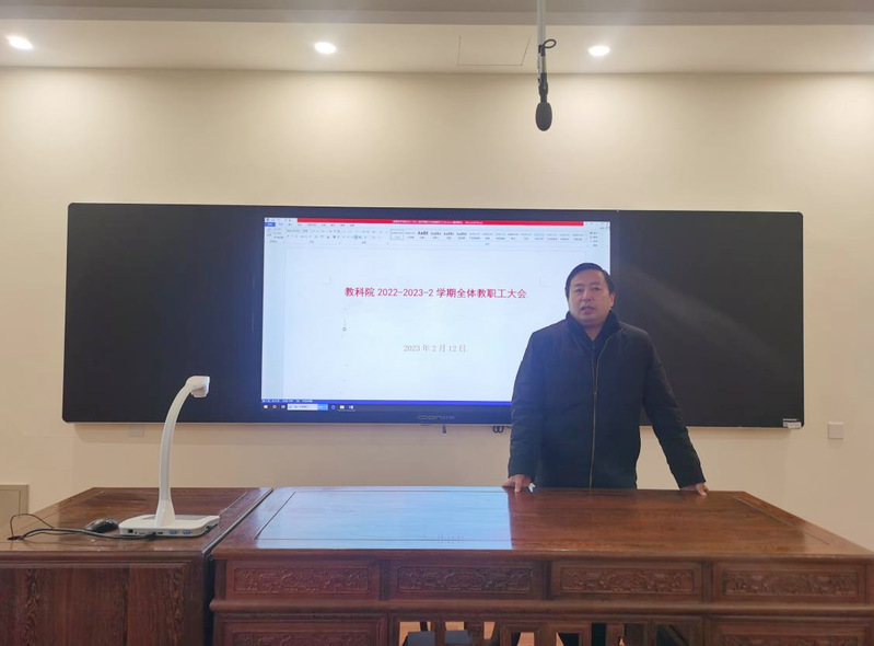 会上,徐国华校长向全体老师致以新年的问候,肯定了教科院2022年取得的成绩,同时提出了新学期的发展期望,他号召全体教职工提高站位、勇于担当,齐心协力做好新学期工作,重视学校教育教学审核评估工作,全面推进助力学校硕士学位授予单位立项和学科建设。
