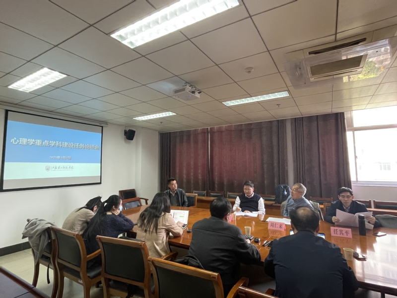 2023年4月9日下午,教育科学学院在草场门校区教科研楼503会议室举行心理学重点学科建设任务论证会。南京大学心理系主任、博士生导师周仁来教授、南京师范大学心理学院院长、博士生导师陈庆荣教授、南京晓庄学院心理健康研究院名誉院长、博士生导师任其平教授应邀现场指导。副院长王会霞、心理学学科方向带头人和学术骨干参加了本次论证会。