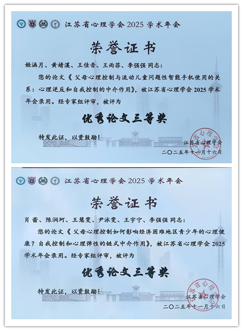 喜报!教科院学子获得2025年江苏省心理学会学术年会优秀论文三等奖