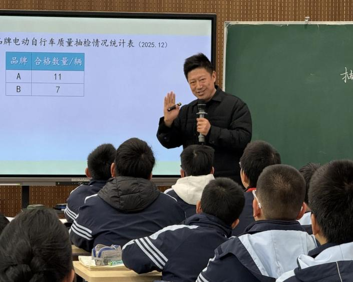 小学教师胡智慧以《百分数的认识》为课题的同课异构教学后,高淳区教师发展中心副主任张晓辉以电动自行车新国标抽检为情境,设计“网格画图表示合格率”“辨析数据随机性”等活动,紧扣数据意识培养,将素养目标融入教学细节,为高段数学教学提供示范。