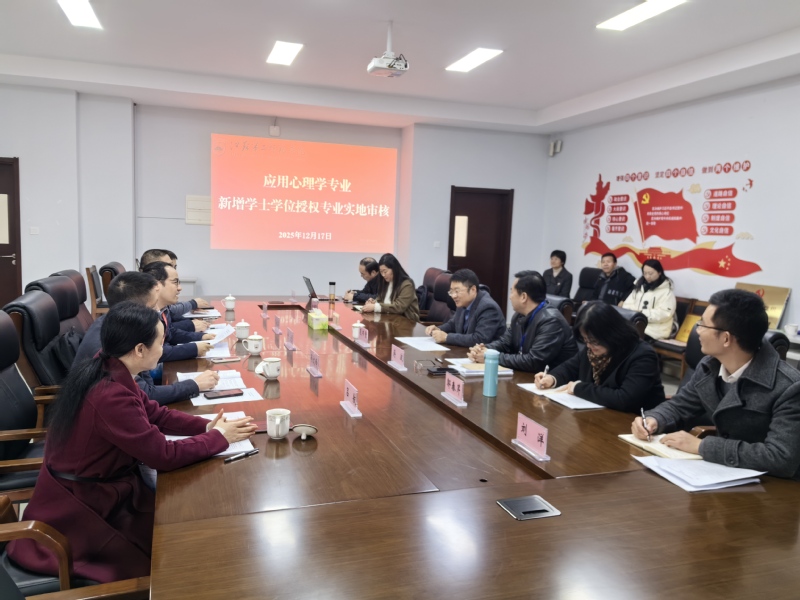 2025年12月17日,学校举行应用心理学专业学士学位授权实地评审。花书贵副校长、质评处副处长刘洋,学院党政班子及心理学系全体教师参加了评审会。